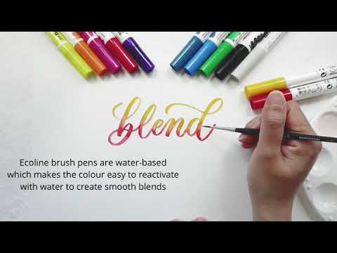 De ecoline brushpen is een pen met een stevige flexibele punt. Met deze pen kun je gedetailleerd inkleuren, grote vlakken kleuren, schrijven, kalligraveren en handletteren.